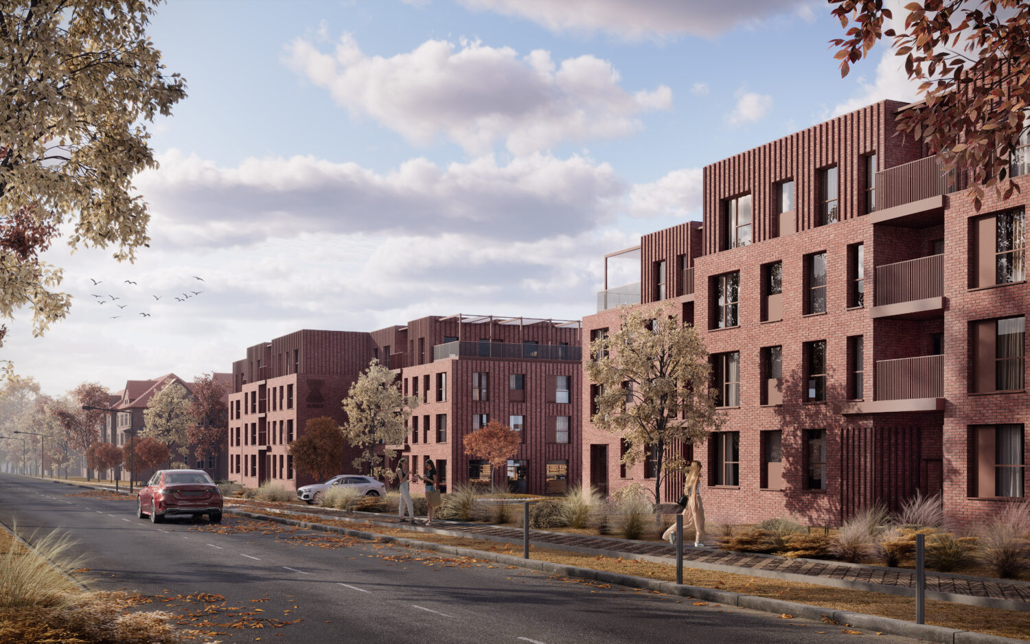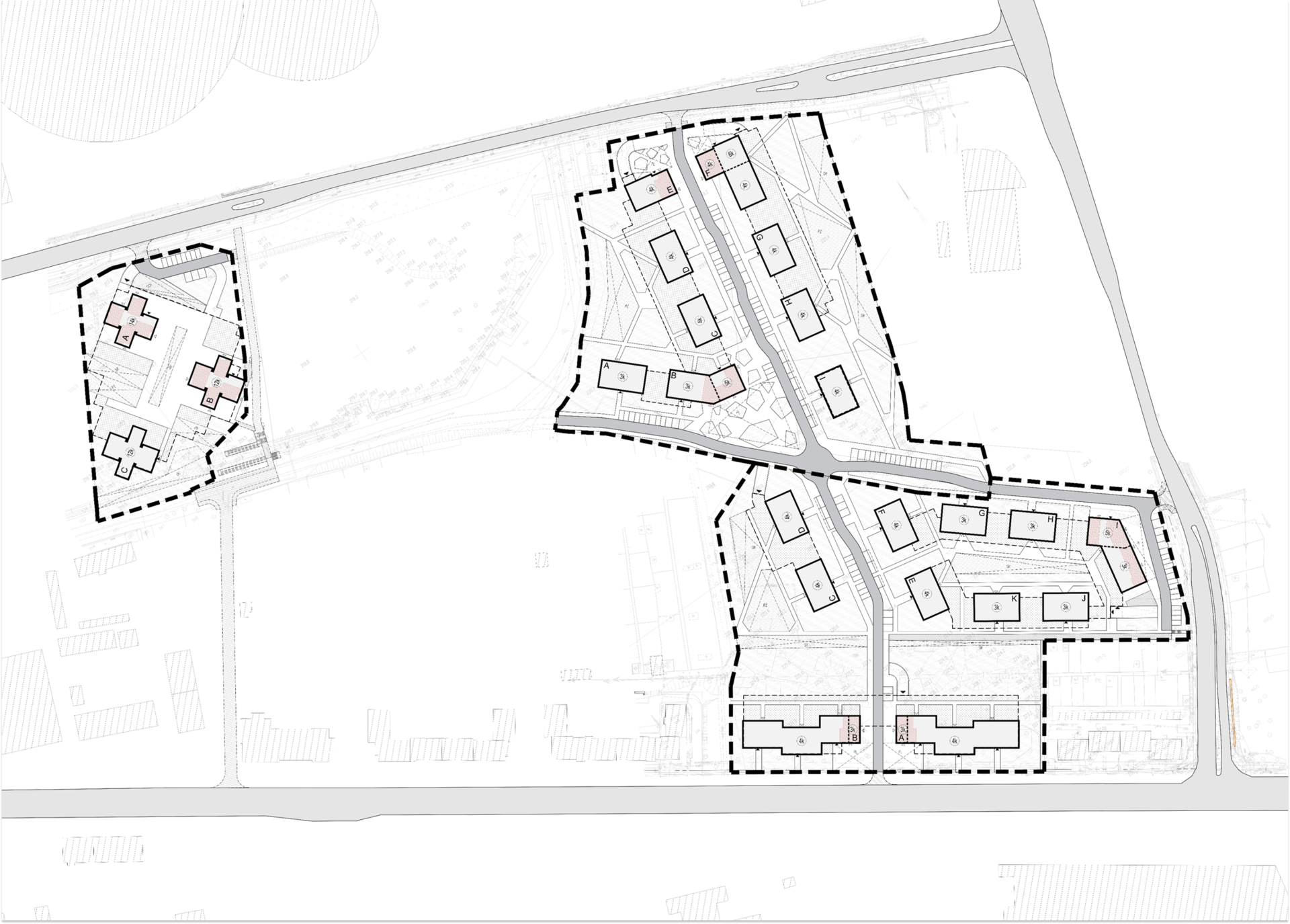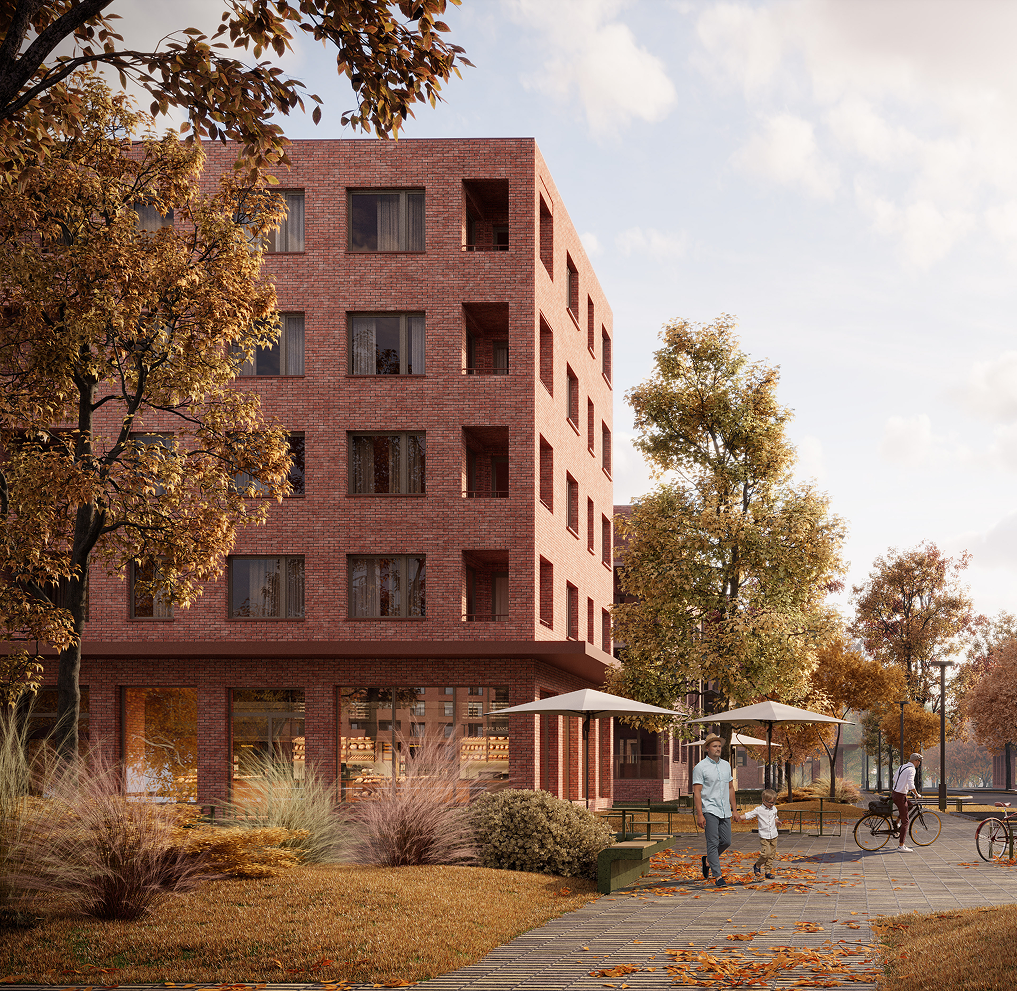 Forma zabudowy odpowiada zróżnicowanemu otoczeniu oraz planowanemu rozwojowi obszaru, obejmującemu zieleń parkową, usługi i przyszły węzeł przesiadkowy z intensywnym ruchem pieszym. W centrum zaprojektowano niskie, kameralne budynki wpisane w zieleń, nawiązujące do historycznych osiedli śląskich i niemieckich. Bliżej areny pojawia się zabudowa punktowa o bardziej wielkomiejskim charakterze.